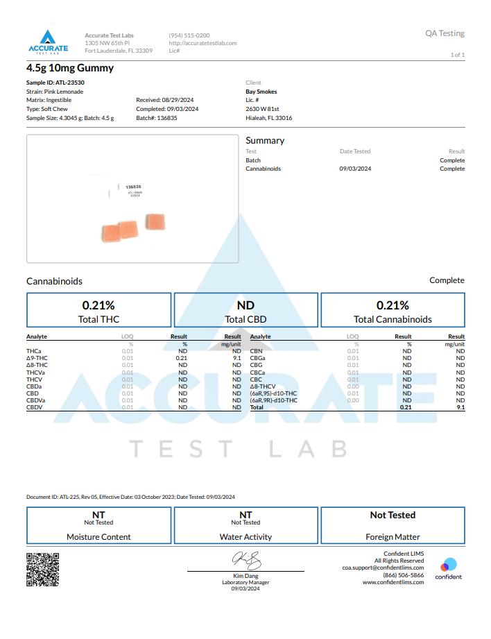 Tested by: Accurate Test Lab – 09/01/2024
